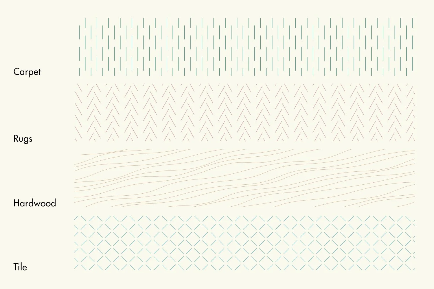 The overarching Covered By brand introduces an underline that acts as the “floor" of our consumer’s home. Overtop this underline is a series of handwritten descriptors which create clarity of category and elude to the consumer’s participation in the process. The juxtaposition of geometric sans serif and handwritten font shows that there are two distinct forces in the shopping and purchase process. To create further category differentiation, four different minimal patterns were introduced for our four categories to create a graphic and memorable segmentation that gives the consumer clarity.