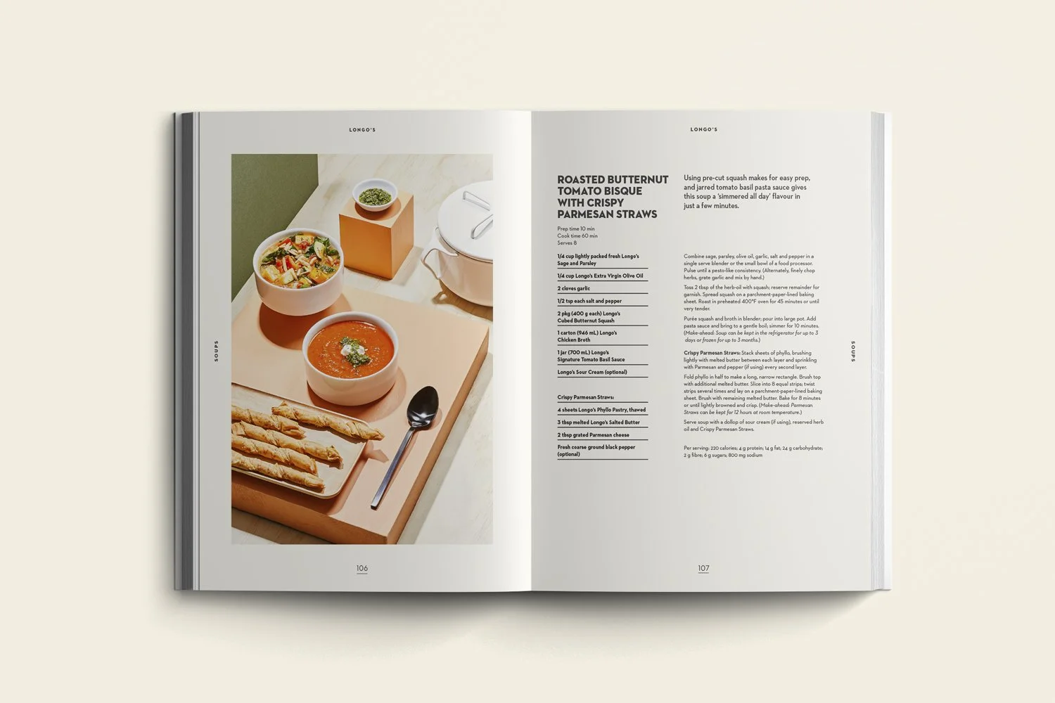 Using 12 issues of Longo’s Experience magazine as content, those recipes were turned into a cookbook to provide a comprehensive, single-source, cooking guide for all those families stuck at home during the pandemic. So many people were required to cook considerably more than they were used to so Longo’s wanted to lend a helping hand to give inspiration during this trying time.