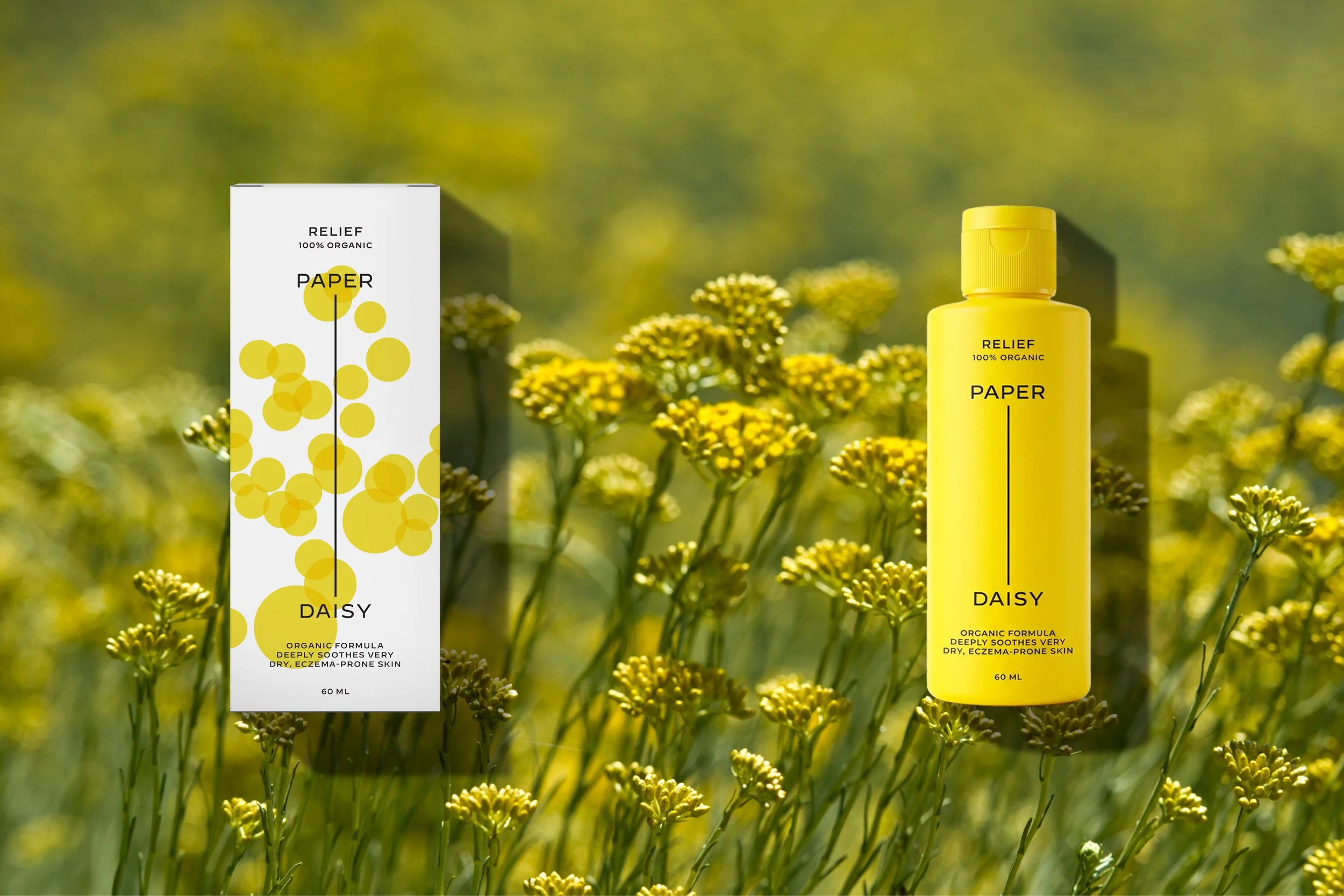 Helichrysum—often affectionately called paper daisies—is a key ingredient in eczema relief. This new brand embraces the plant’s playful nickname while bringing together the concept of nature and science to present a powerful solution for this common skin condition.