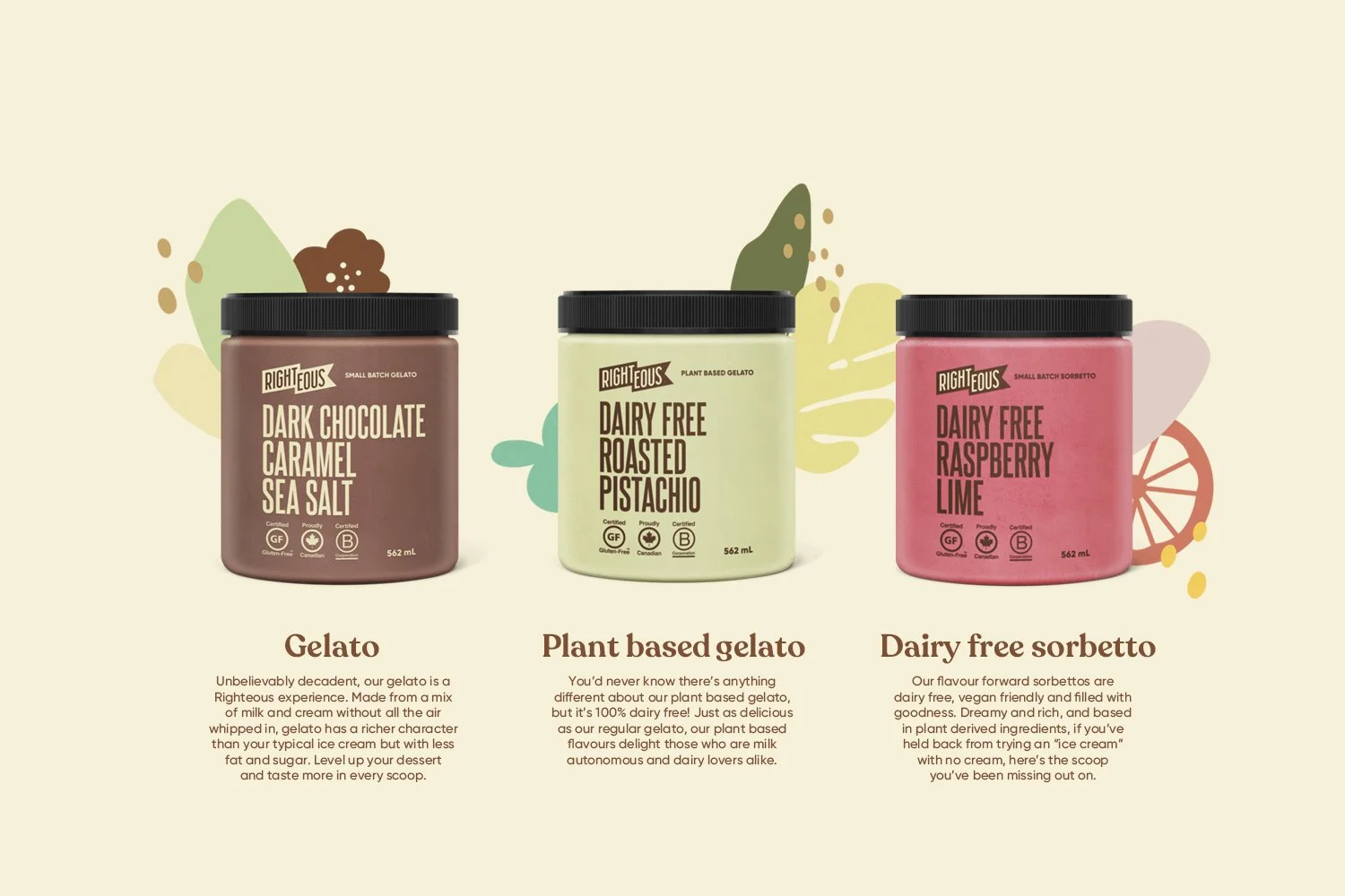 Previously known as Fiasco Gelato, the Canadian-born company was ready to spread to the U.S. However, a trademark hiccup meant they needed to rebrand as Righteous Gelato. This gave them the opportunity to re-evaluate the brand identity and put a strong foot forward in their world domination. The name “righteous” has strong links to the surf community, which the brand sees as a significant influence in their corporate culture. A surf flag-inspired logo led the rebrand and introduced a new colour palette as well as a surf and flavour-inspired illustration system.
